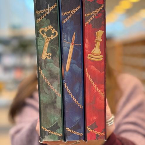 Noget af det jeg virkelig synes er fedt ved bøgerne, udover en spændende og medrivende fortælling, er deres ydre. Hver bog har sin egen farve og der er mange detaljer på forsiderne, bl.a. af ting der kommer til at spille en rolle i den enkelte historier. Derudover går farven fra forsiden igen på bogens sider, så den røde bog har røde sider, den blå har blå sider og så videre.