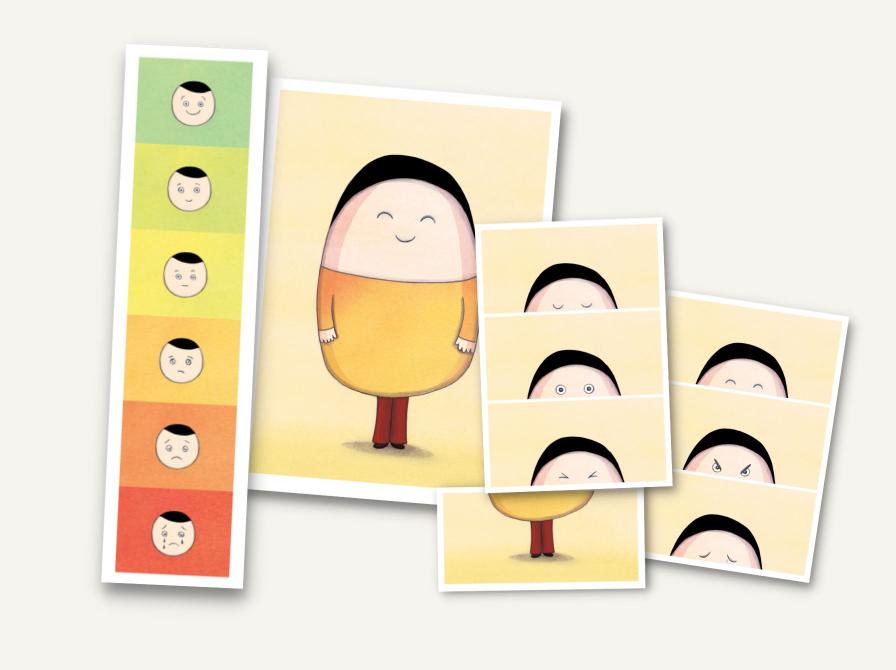 Bogen "Inden i mig - og i de andre" af Karen Glistrup, der er en samtalebog om barnets egne og andre menneskers følelser, er en god katalysator til at få de gode snakke om følelser i gang. Illustratoren, Pia Olsen, har kreeret et af de særlige humørsvingende væsner, som I frit kan printe ud og benytte, når I skal tale om følelser. Der medfølger forskellige varianter af øjne og munde, så I kan ændre dens humør. Sammen med filerne finder du også et humørbarometer, som I kan understøtte humør- og følelsessnakke med.