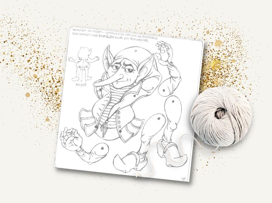 Sprællenissen er tegnet af Ursula Seeberg, der også står bag tegningerne i Bjarne Reuters julekalenderhistorie i 24 afsnit, som I kan læse eller lytte til, før, under eller efter I har bygget de fine nisser.