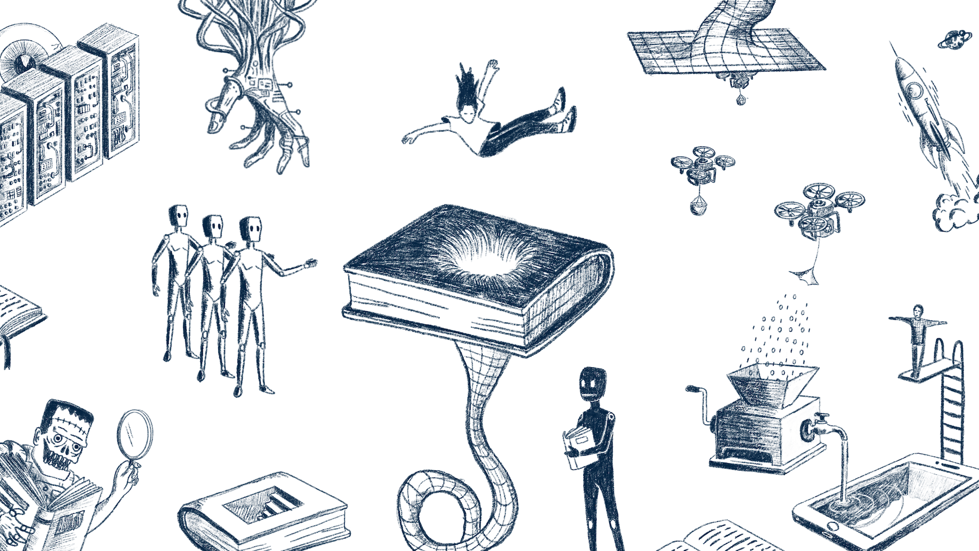 Den konstante udvikling rejser ofte spørgsmål og sætter os i nye dilemmaer. Her kan både ældre og ny litteratur måske hjælpe? Hvad enten du er interesseret i fremtidsfortællinger eller fagbøger, kan du finde bøger, der giver viden og perspektiv på teknologi, menneskeliv og samfund. De inviterer til fordybelse, refleksion og samtale – i fællesskaber eller alene. Lån én af de udvalgte bøger og læs dig klogere på fremtiden.